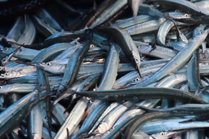 (あれ〜っ?!) 引揚げられた網を見て驚いた。何故なら、網にはサヨリしか入っていなかったからだ。海にはいろいろな魚が棲んでいる。網をずうっと曳いて来れば、いろいろな魚が入ってくるのが当たり前だ。そんな光景を思い描いて、『せめて魚を選別するお手伝いはしよう、せっかくだからサヨリ以外の魚の写真も撮ろう』と準備してきた者としては、肩すかしを食ったよう。